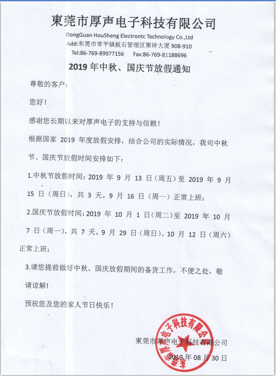 東莞市厚聲電子科技有限公司2025年春節(jié)放假通知